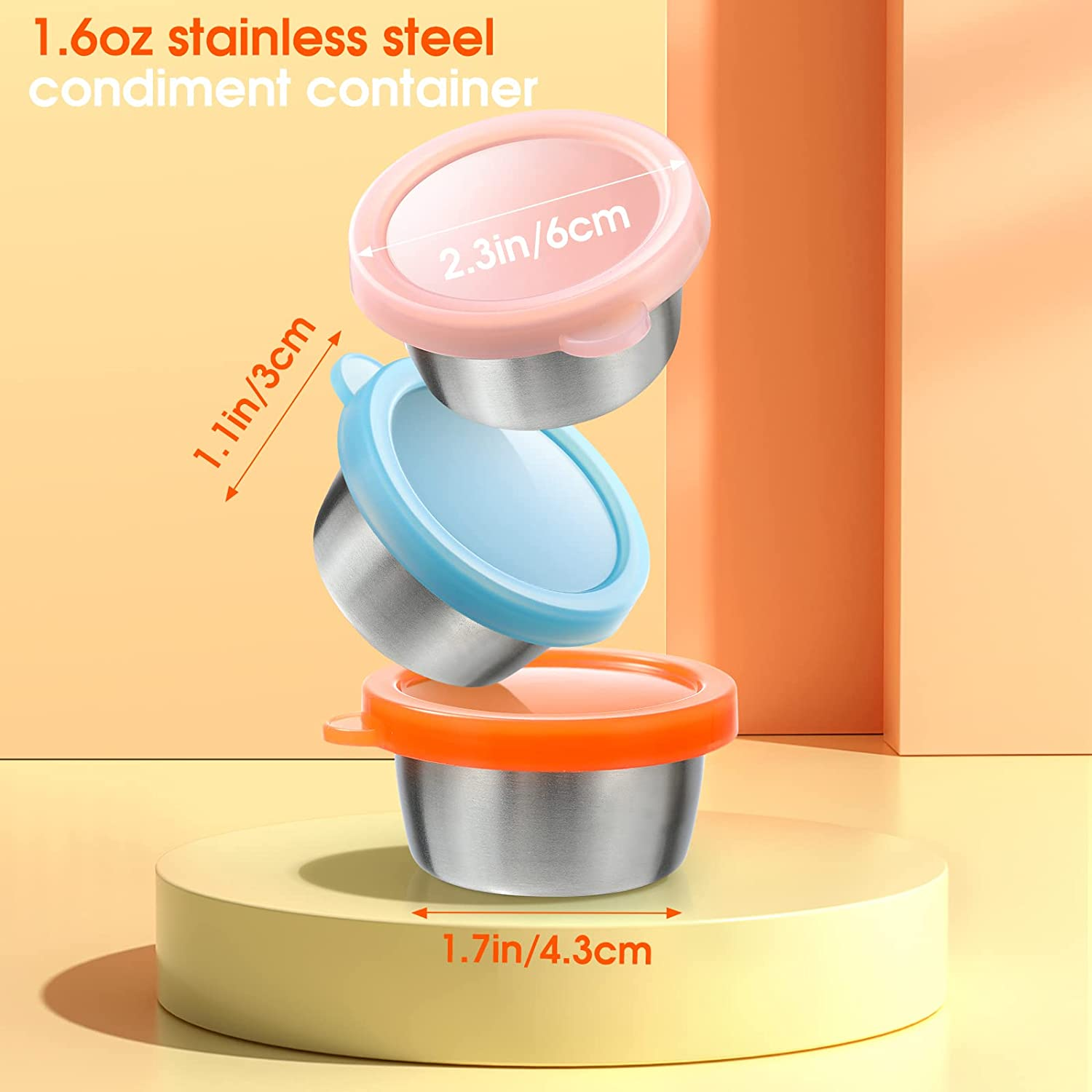 Leak-proof & to go- This salad dressing container is just the right size for a variety of bento and lunch boxes. The silicone lid groove fits tightly to the rim of the cup, making this condiment container completely leak-proof, so you don't need to worry about the sauce spilling out and staining your lunch box or backpack. So much easy to add deliciousness to your lunch.