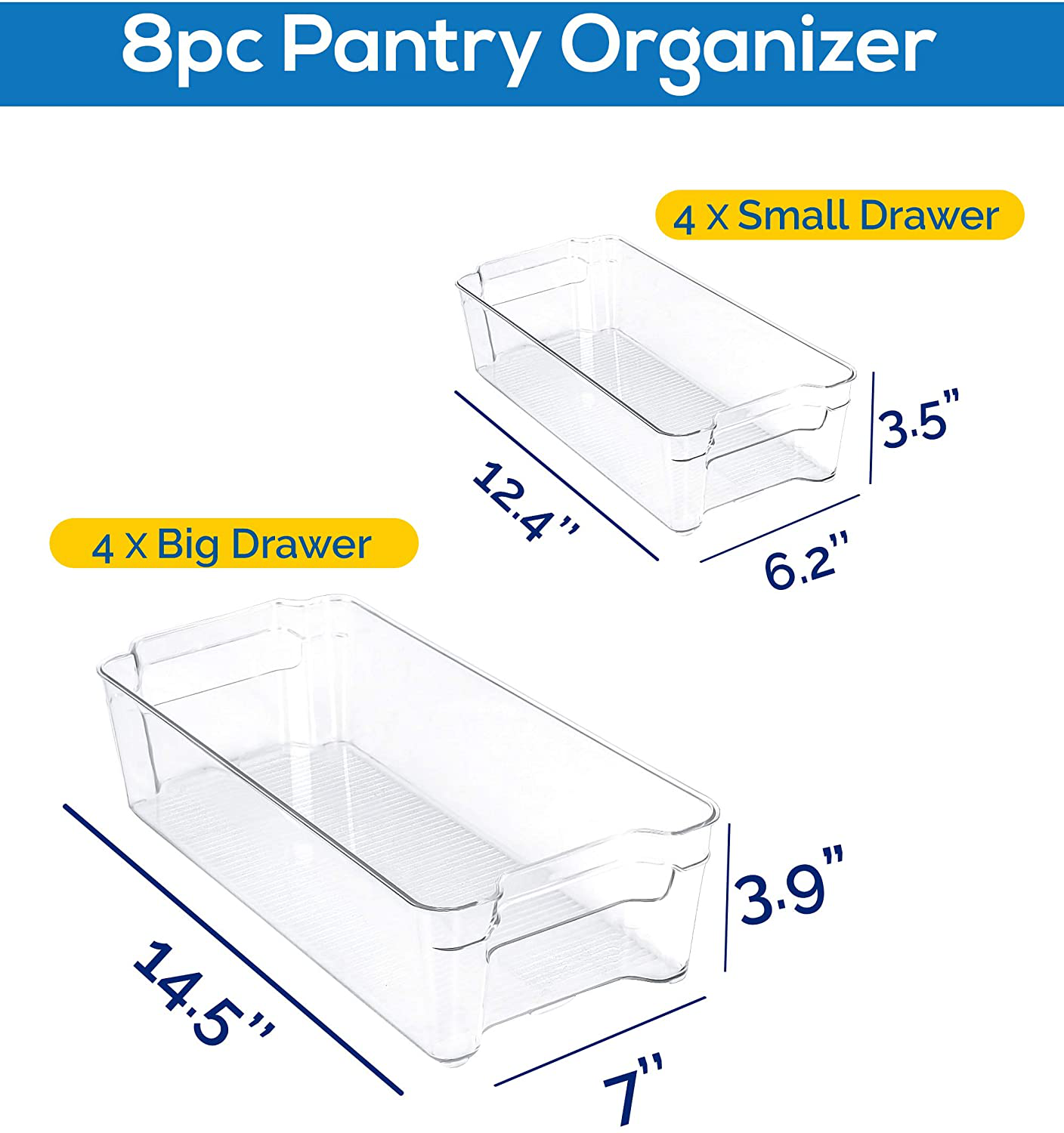 SET OF 8 - Set of 8 pantry organizer allows for better grocery management by providing the appropriate space for proper allocation of commodities