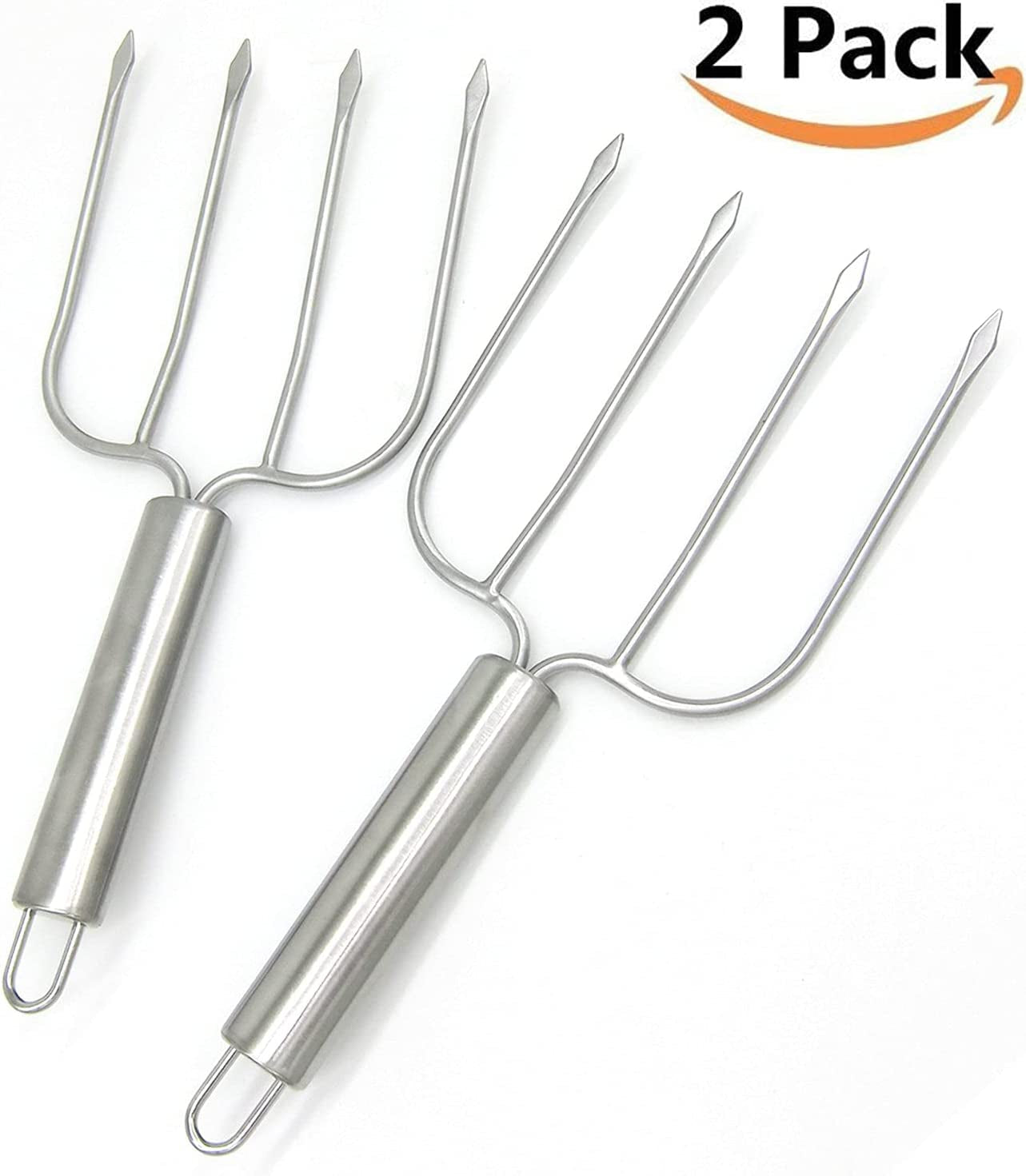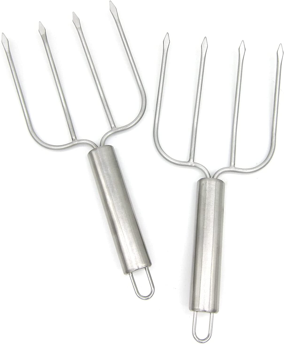 Solid stainless steel construction, extra sharp points pierce meat and anchor your turkey or roast without tearing it or damaging it during transport or turning.
