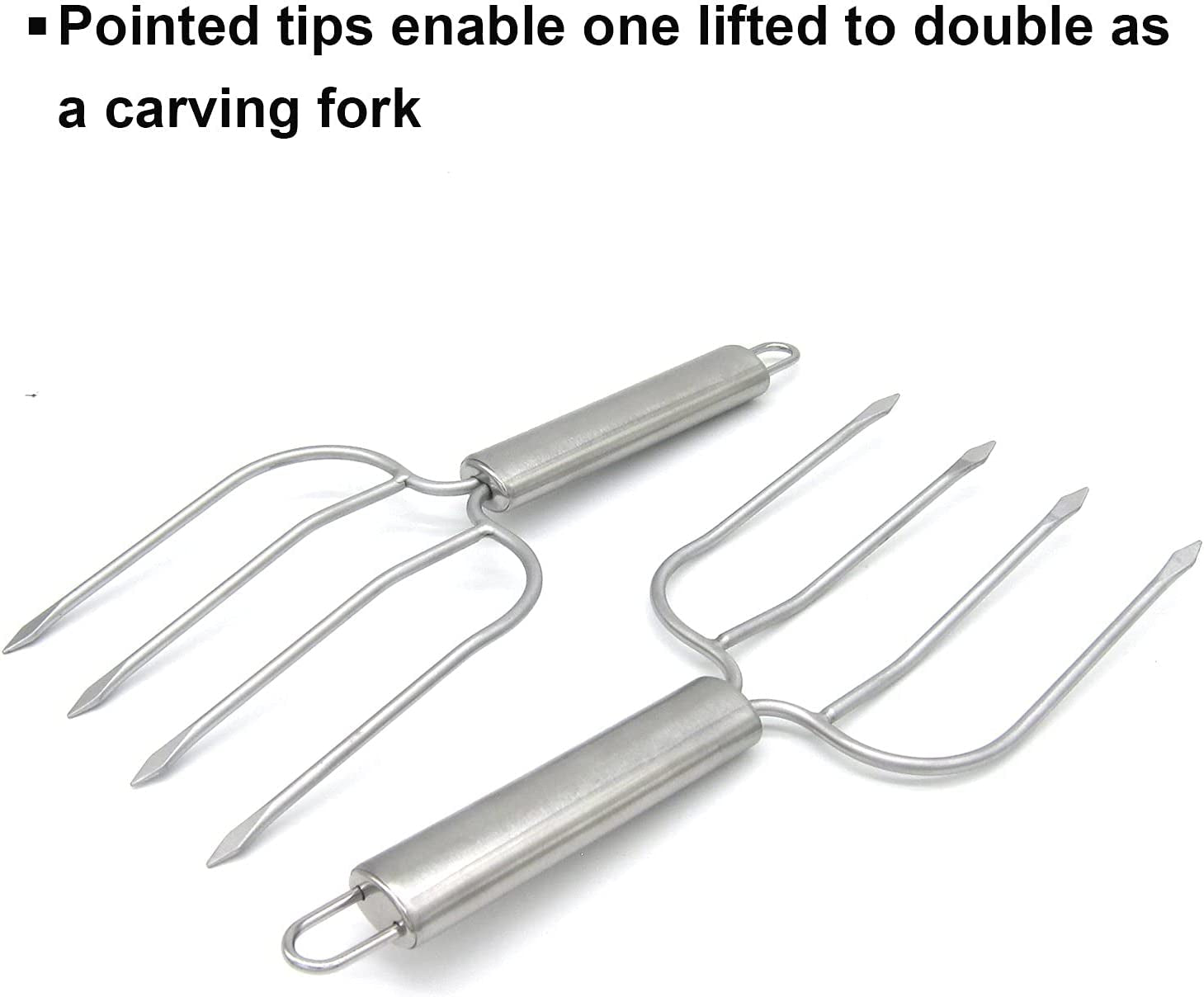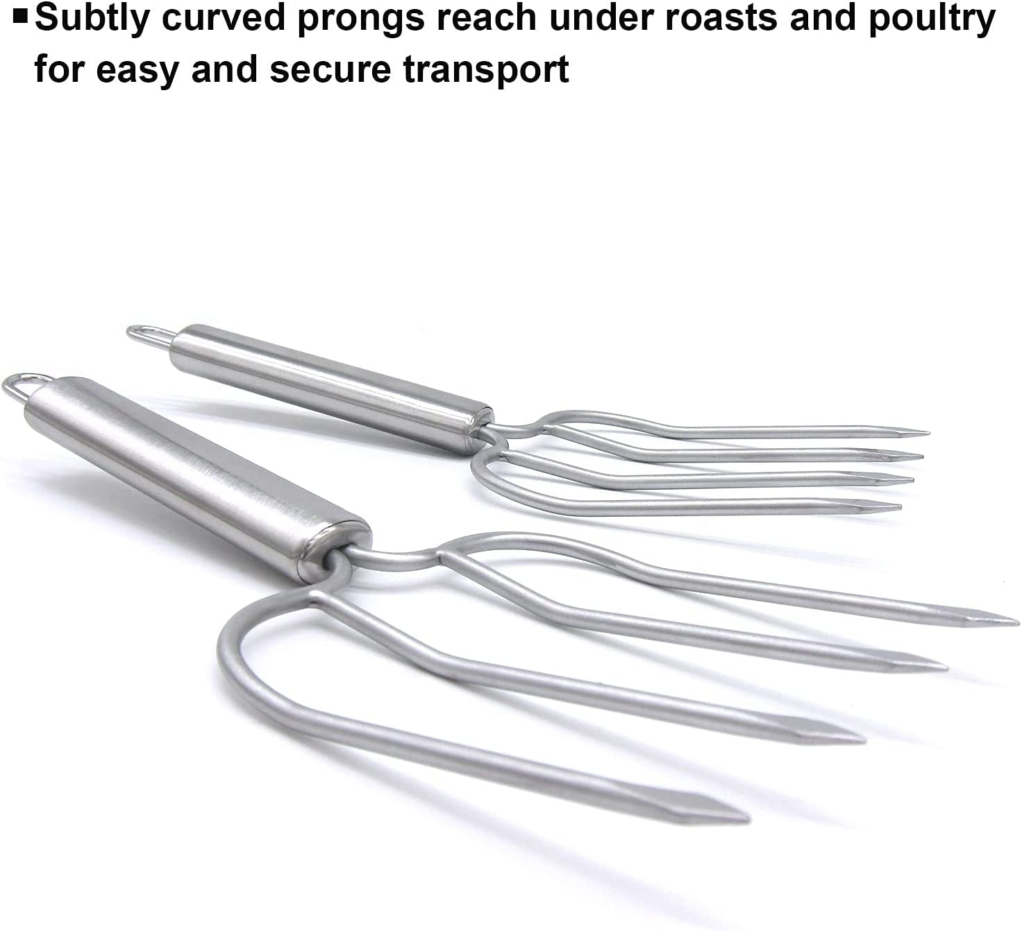 Also double as carving forks, Use this pair of attractive polished stainless steel turkey lifting forks from kitchen to table.