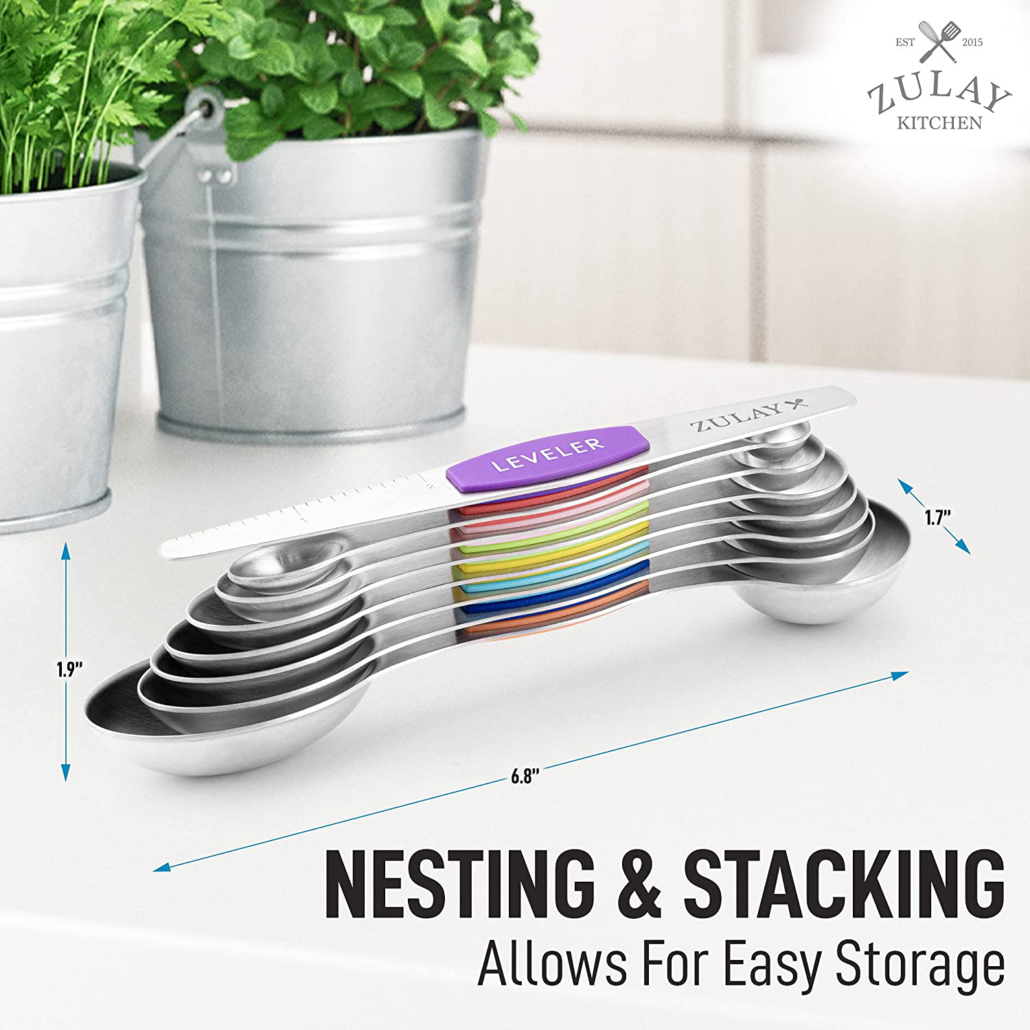 Stackable Nesting Storage: Its magnetic design allows you to store them in a nesting or stacked position. The magnetic core is strong enough to be placed on top of a refrigerator surface or a metal wall strip. So many options for storing!