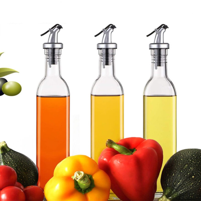 Set Of 4, 500ML Oil, Vinegar, Leak Proof Glass Bottles With 8 Labels