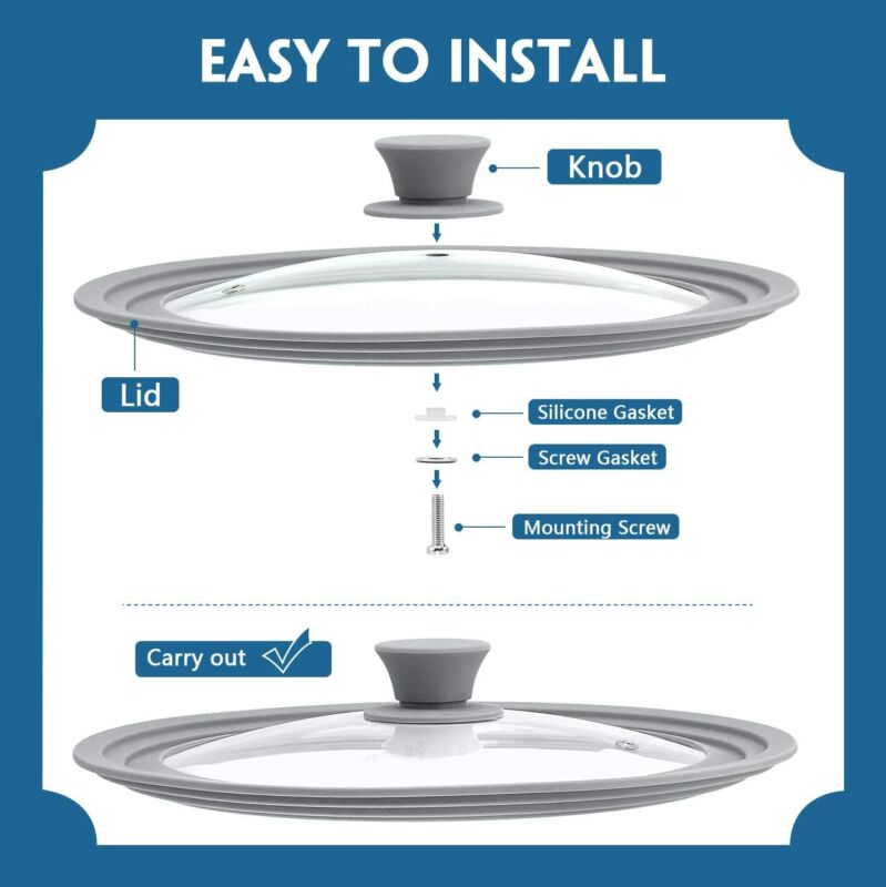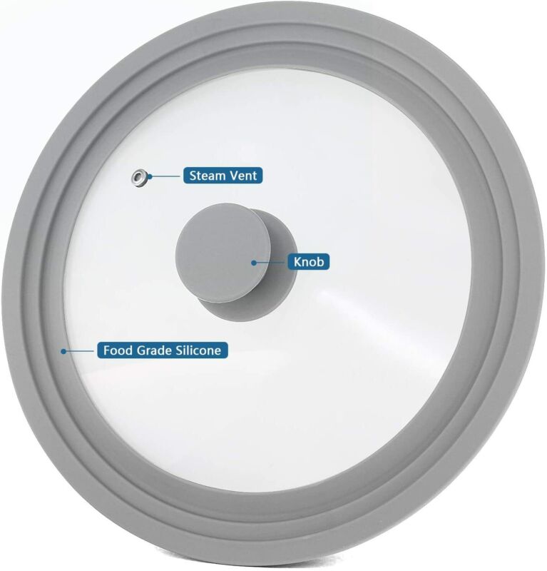UNIVERSAL MULTI-FUNCTIONAL POT LID: The high-quality lid is made of silicone outer ring and strong tempered glass, durable, and heat resistant. The lid provides you with a steam vent and a 304 stainless steel rim that is free of BPA. Therefore, it is safer than standard glass and you can use it for a long time. Ideal for kinds of kitchenware, provide you the strongest pot lid on the market.