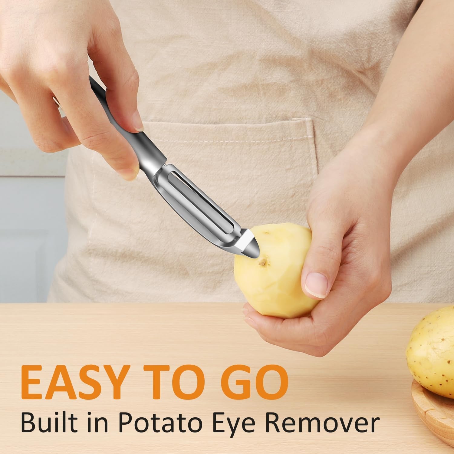 • Ergonomically designed with a non-slip handle, this 2-piece kitchen peeler set assures comfortable and firm grip, preventing kitchen accidents during peeling tasks.